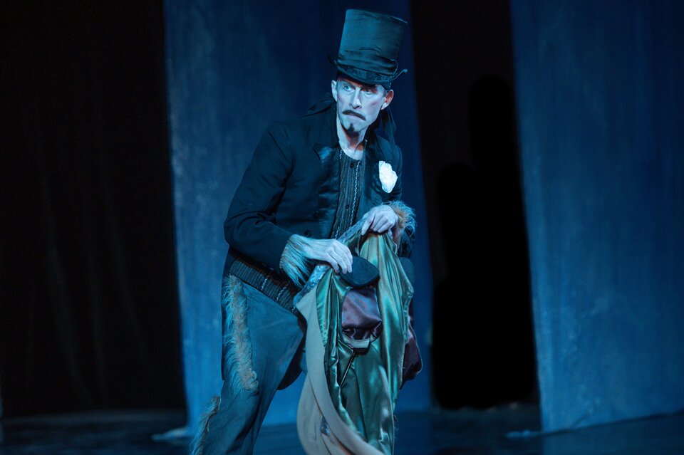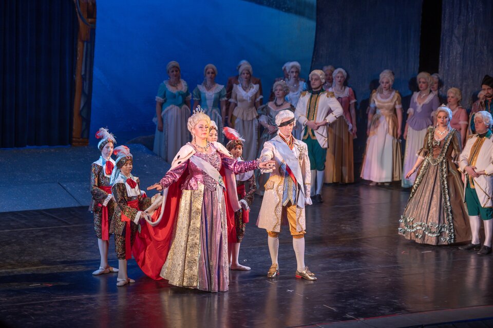 Каких только чудес не случается в зимнюю, ясную ночь перед самым Рождеством! Одну только ночь и осталось нечисти шататься на белом свете... Как тут Чёрту не подъехать мелким бесом к Солохе, слывущей ведьмою? Да, и сыну её, молодому кузнецу Вакуле охота досадить за то, что тот намалевал его так, что «инда черти хохочут сдуру». Вот и нагнал Бес пургу в той надежде, что старый Чуб, оставшись дома, помешает Вакуле увидеться с дочкой его, возлюбленной кузнеца, Оксаною — первой красавицей и по ту, и по эту сторону Диканьки... Ах, как смеётся гордая дивчина над чувствами несчастного влюблённого! Ах, как жестоко шутит, обещая пойти за него замуж, если он достанет ей такие черевички, которые сама царица носит! Но... Каких только чудес не случается в зимнюю, ясную ночь перед самым Рождеством... С антрактом