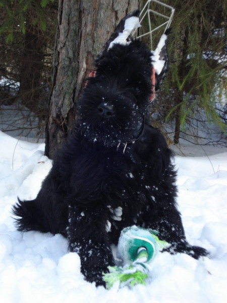 Кого интерисует щенок ризеншнауцера чёрный , купированый, социализированый 3 месячный кобель