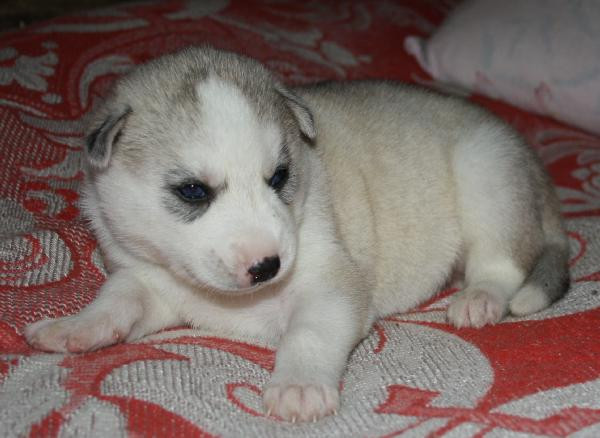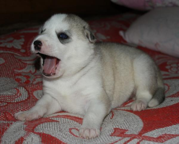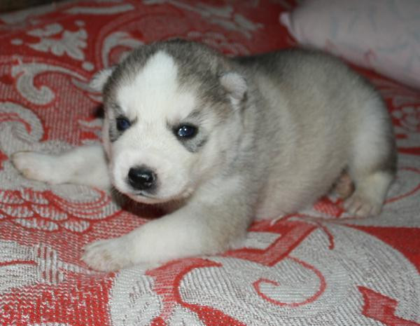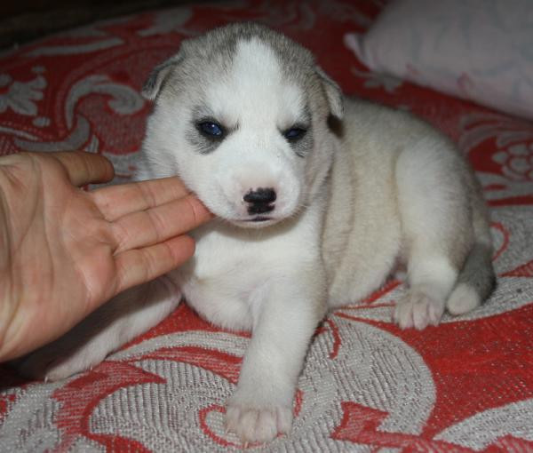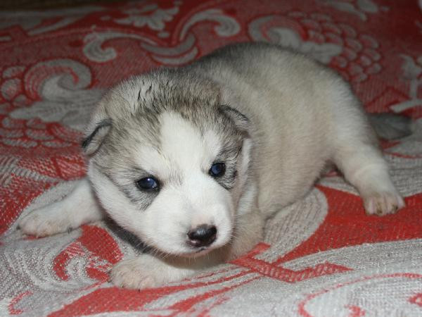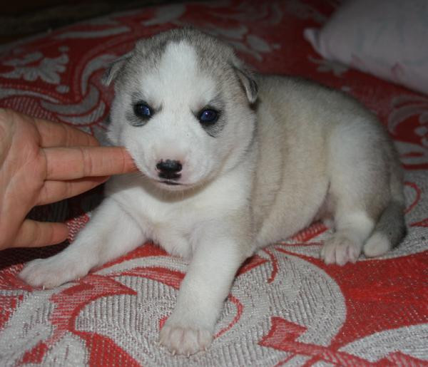 Девочка номер 1. Самая крупная из всех щенят. Серо-белая голубоглазая фото№3