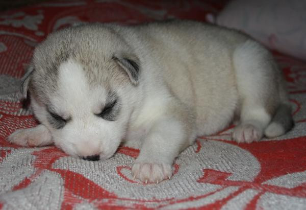 Девочка номер 1. Самая крупная из всех щенят. Серо-белая голубоглазая фото №6