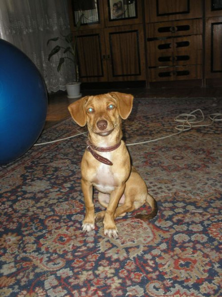 Нашли в деревне маленького пёса. Мальчик. Это щенок от таксы, смешанной с кем-то (в галерее есть его фотографии.) По-видимому ему еще нет полугода. Красивый, умный,умеет охранять дом,ест все, к туалету уже приучили,гуляет на поводке, дома не балуется, ничего не грызет, знает слово нельзя.