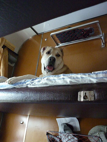 Назад уже ехали, соба всю дорогу спала, но стоило только торговцам всякой хрени попобовать зайти в купе, слышали недовольное рычание :-)