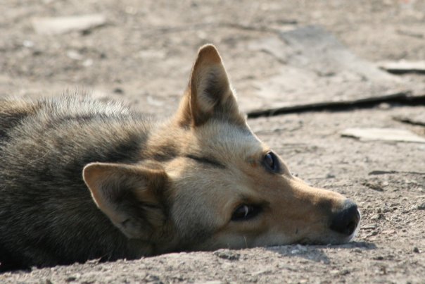 Обычная несчастная дворняжечка.