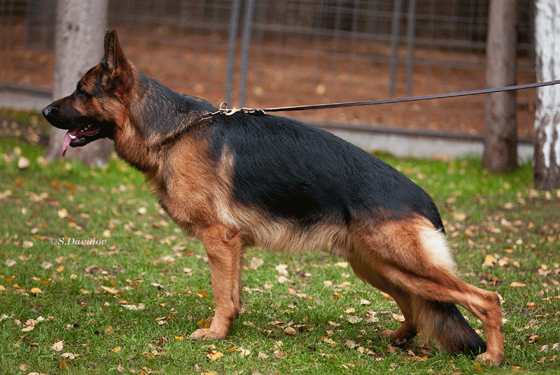 На фотке красавец. Ехала года этак 4 назад в маршрутке, на Московском зашел поддатый мужик с овчаркой сукой. Сел рядом со мной. Собака очень умненькая. вот он мне рассказывал, что едут они сейчас с работы, работают в МВД, так вот бабушка этой суки , говорит, была волчицей. "Посмотри" говорит, "какие у нее длинные лапы (пальцы)"