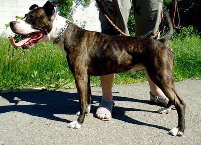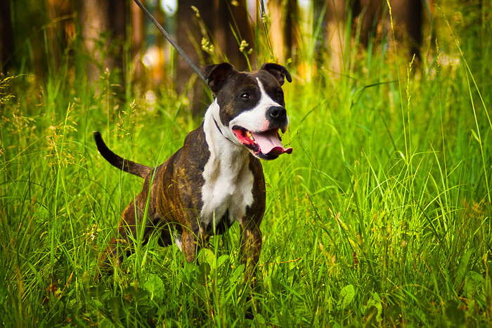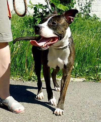 Американский питбультерьер, тигрового с белым окраса, зарегистрирован в нижегородском клубе "Ральф". Абсолютно адекватный, ориентирован на человека, ласковый и озорной мальчик, любит детей (рос вместе с ними). Любит подвижные, активные прогулки. Такой заводила! Энерджайзер в собачьем исполнении!