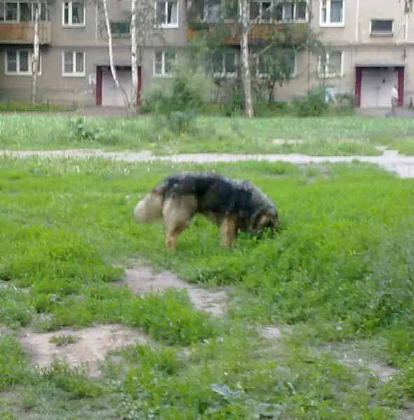 к нашему дому овчар зимой прибился, старый старый уже.... так его уборщицы приютили в мусорной комнате у подъезда обитает.....