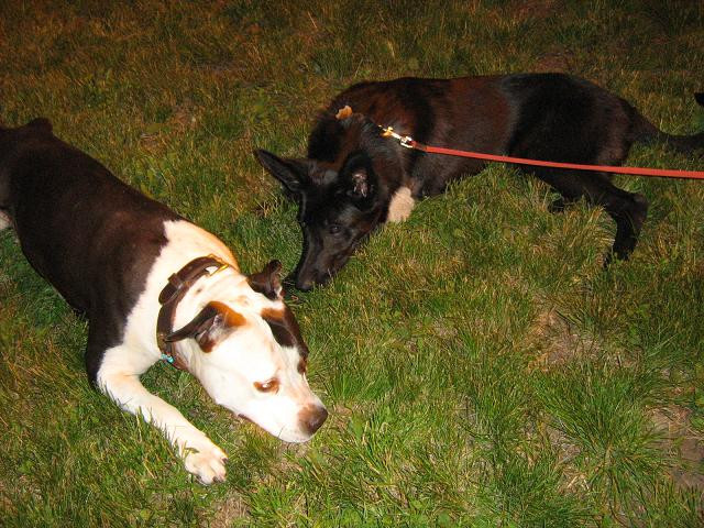 кстати, ветеринар согласился со мной в том, что это действительно метис немца. у неё и голова, и корпус, как раз выдают черты этой породы.... пока попробую ещё поискать прежних хозяев..до конца недели. а там уже будет видно, у кого она будет жить. ей около 5 мес- зубы молочные ещё.