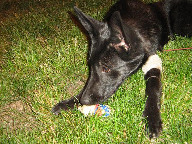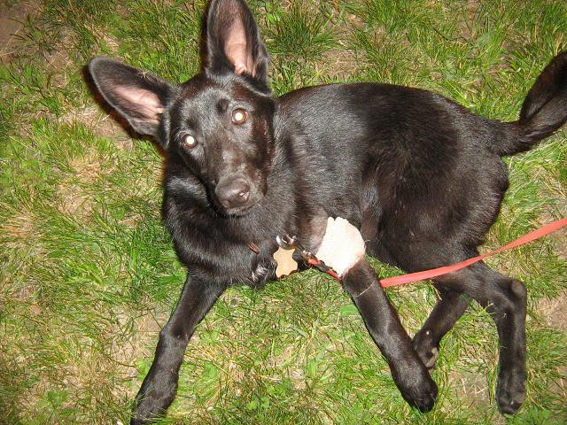 вообщем, сообщаю новости. операцию мы сделали. теперь лечим дальше. скоро снятие швов, затем, через 2 недели- выемка спиц. собака идёт на поправку. хочу сказать, у неё очень хороший характер. что нравится, если её отделить- запереть в др. комнате, она не выносит дверь и не истерит вообще- тихо сидит. это очень радует. в туалет ходит на улицу, но, бывают, конечно, и другие случаи=))).... обажает что-то тырить, носить в зубах. причём знает, что тырить нехорошо... может даже со стола стырить... вот, видимо, ей позволяли это там, где она жила. у неё лабрадоро- овчарочий характер- на улице не может пройти мимо ни одного человека, надо обязательно подойти, облизать и т.д. обучаемость очень высокая, всё слушает и есть "обратная связь"- это видно.