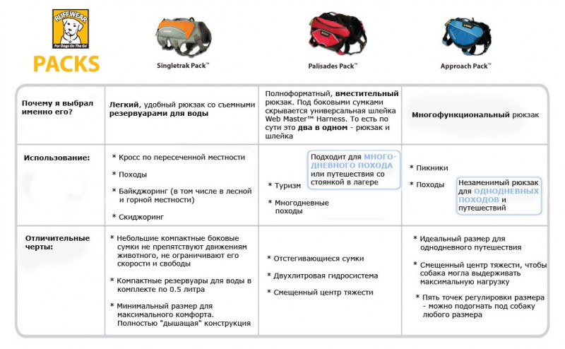Подобрать рюкзак для вас и вашей собаки поможет небольшая сравнительная табличка)