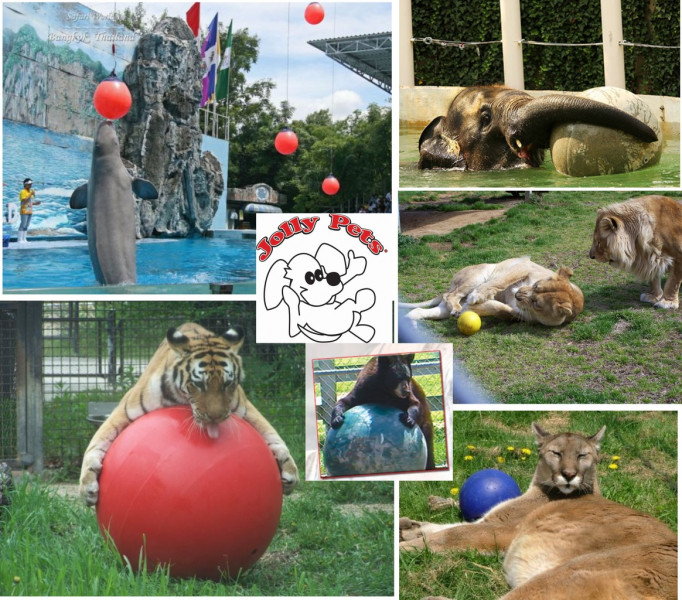 Компания Jolly Pets появилась в США в 1994 году, ее первым продуктом стал гигантский мяч Jolly Ball, который предназначался для игр как домашних любимцев, так и диких животных в зоопарках