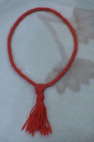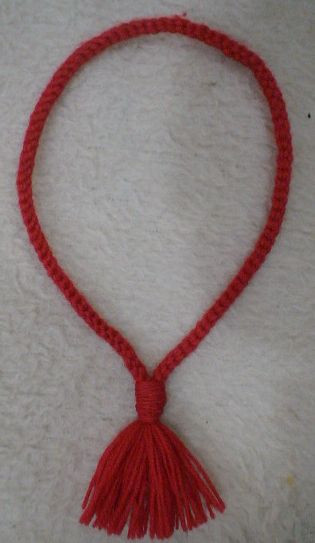 Красный - классический,возможны варианты с разноцветными нитями,в виде узоров(образцы будут позже)