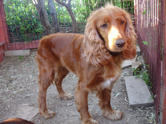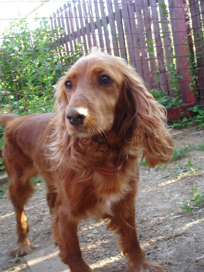 Сегодня час назад зашел к нам "в гости" рыжий английский кокер-спаниель, ухоженная молодая девочка с ошейником.