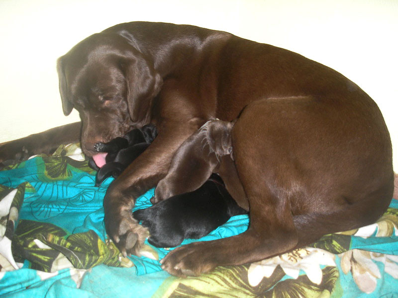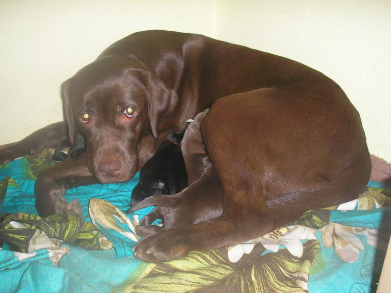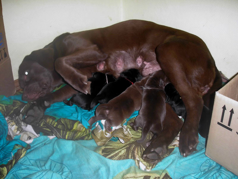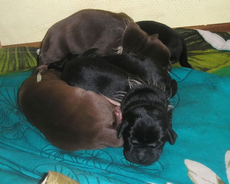 3 апреля у нас в питомнике родились первые правнуки!3 черные девушки и 2 коричневых парня. Мамочка Ская сходит с ума от любви к своим первым детишкам. А мы желаем им вырасти здоровыми, крепкими и красивыми, как их родители!