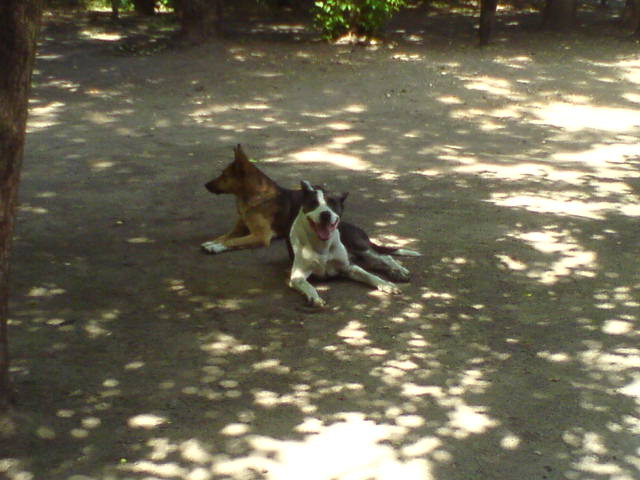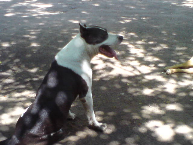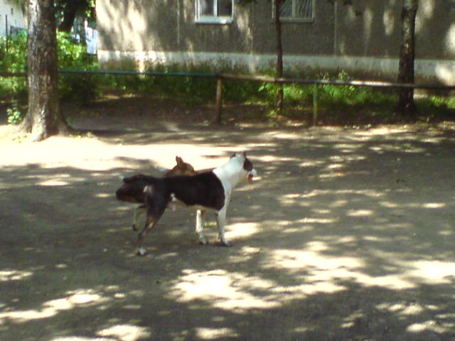 Когда первый раз встретились с ним, мы были с Семеном, стафф, охраняя суку, пошел в "наступление", но после команды "фу", вернулся на место.