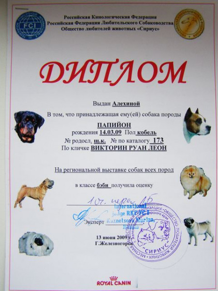 Он уже имеет выставочную оценку- БП, ЛБ!!!