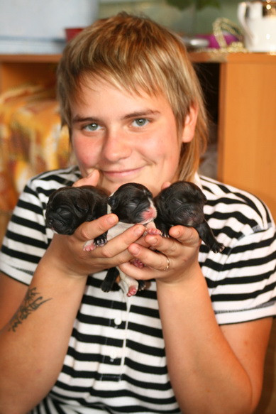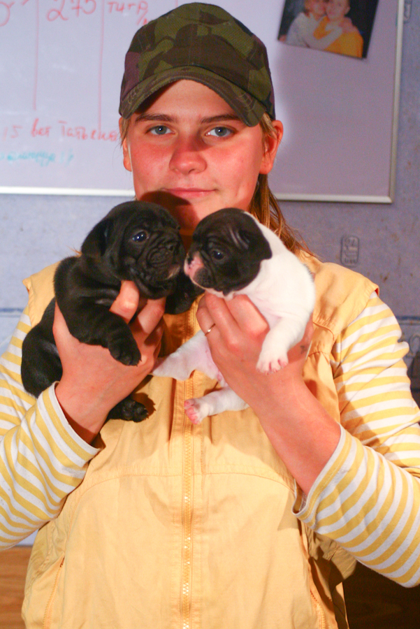 Бульдого население Нижнего УВЕЛИчилось аж на 2 бульдого-морды. Сука остается у меня а Кобель уезжает жить к Жуже :)) ну а еще одного кобеля берет моя заводчица... вот такие мы жадные Маленькие зайцы... все себе :))