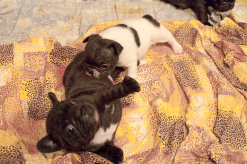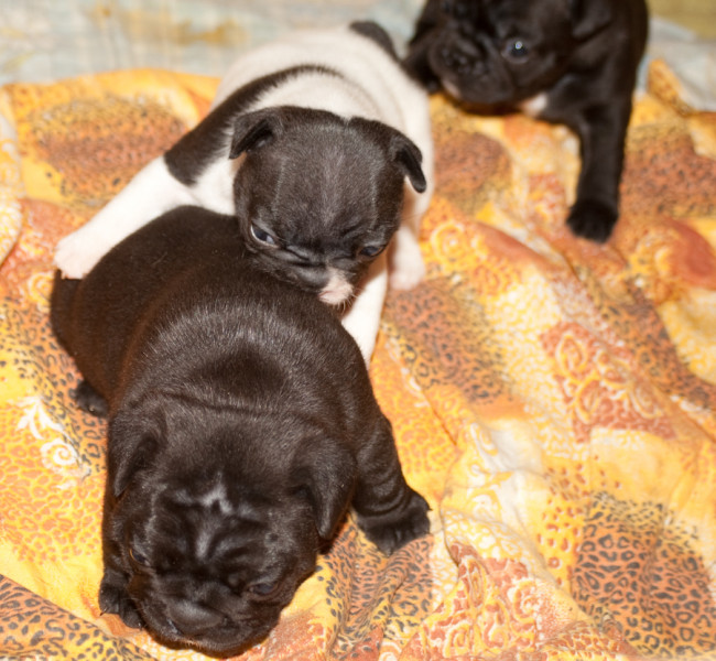 глядя на таких приличных щенков и на фото папаши руки чешутся приобрести себе ещё француза! Хороши!