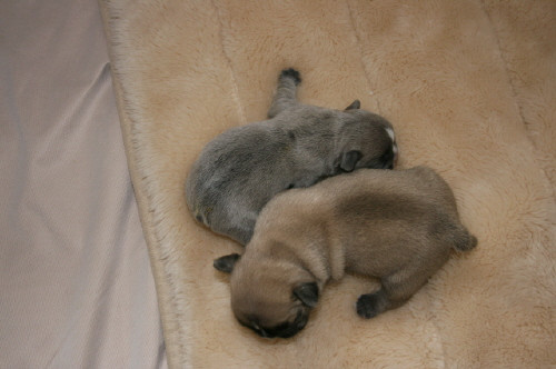 для сравнения на левой фотке нормальный-палевый щенок, и палево-голубой мутированый