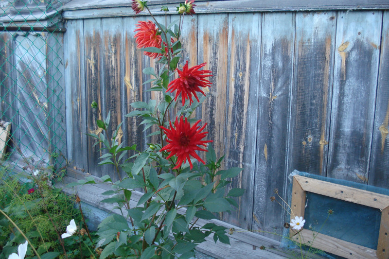 георгины мы брали с рук, было объявлено, что это санта клаусы, но я посмотрела по фото, они похожи на сорт "Помпонная Ред Вайт микс"