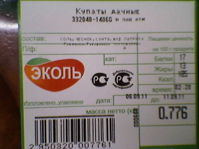 На мясные изделия производителя ЭКОЛЬ