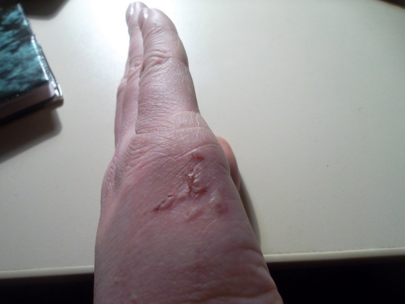 Спасибо!) На руке остался след как отожога и при нажатии на него больно(