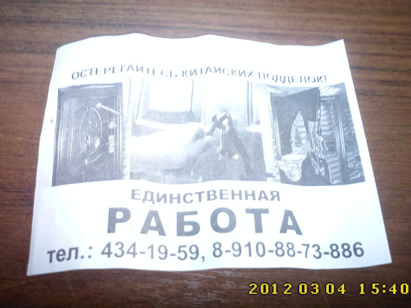 а мне на железную дверь офиса наклеили магнитик с надпись : вскрытие любых замков)))))))номера телефонов не помню.