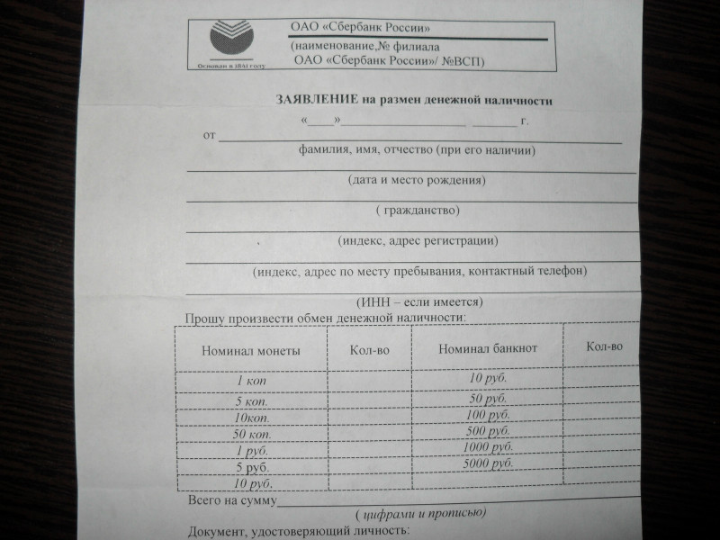 Зашёл в сбер оплатить ЖКХ, ну и как всегда... чем я могу Вам помочь? Говорю: талон в кассу пробейте. Отвечает: иди в банкомат, у нас компы полетели. Говорю: мне надо разменять 5 руб, суют бумажку-заявление, в котором, для размена денег нужно указать: фио,паспорт,инн, адрес и телефон.