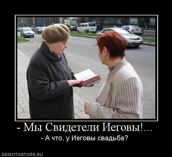 Заходили ко мне, было дело. Пришли две пенсионерочки и говорят: "Как Вы считаете, может ли Бог создать такое правительство, которым были бы довольны жители страны?" Ну а я что? Сказала: "Идите, бабушки, с внуками няньчится лучше. У меня хорошо всё.". Даже не нахамила ни разу.