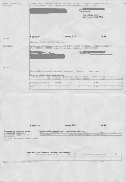 В начале февраля 2009 года принесли новые квитанции (за январь 2009 ) (они обычные - такого же вида как и на оплату квартиры )