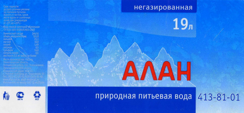 При чем здесь Алан вообще.. тем более, если есть информация, что разливается она абы где. Я не пропагандирую пить воду из родника, которую мы можем набрать сами. Там, действительно, состав может быть нестабилен или не сбалансирован. Я говорю про нормальную природную питьевую воду в бутылках.