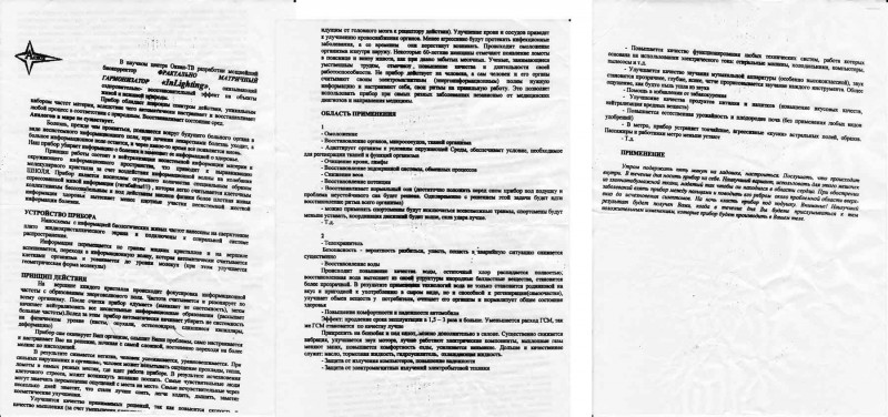 В данном случае действует принцып самовнушения :)))))): "Не прибор действует на человека, а сам человек и его органы считывают своим электромагнитным (энергоинформационным) полем нужную информацию и настраивают себя, свои ритмы на правильную работу." - ещё и с ошибками написали, хреновы разработчики (сайта)!