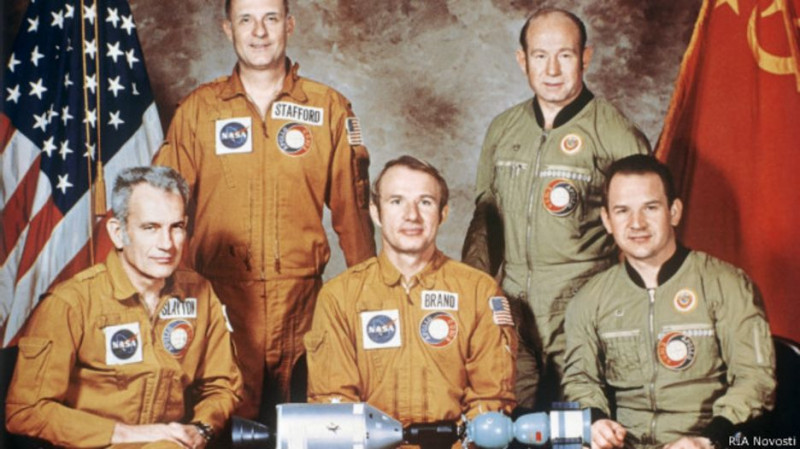Советский корабль с Алексеем Леоновым и Валерием Кубасовым на борту стартовал с Байконура в 15 часов 20 минут (здесь и далее время московское) 15 июля 1975 года. Ровно через семь с половиной часов с мыса Канаверал был запущен "Аполлон" с астронавтами Томасом Стаффордом, Вэнсом Брандом и Дональдом Слейтоном.