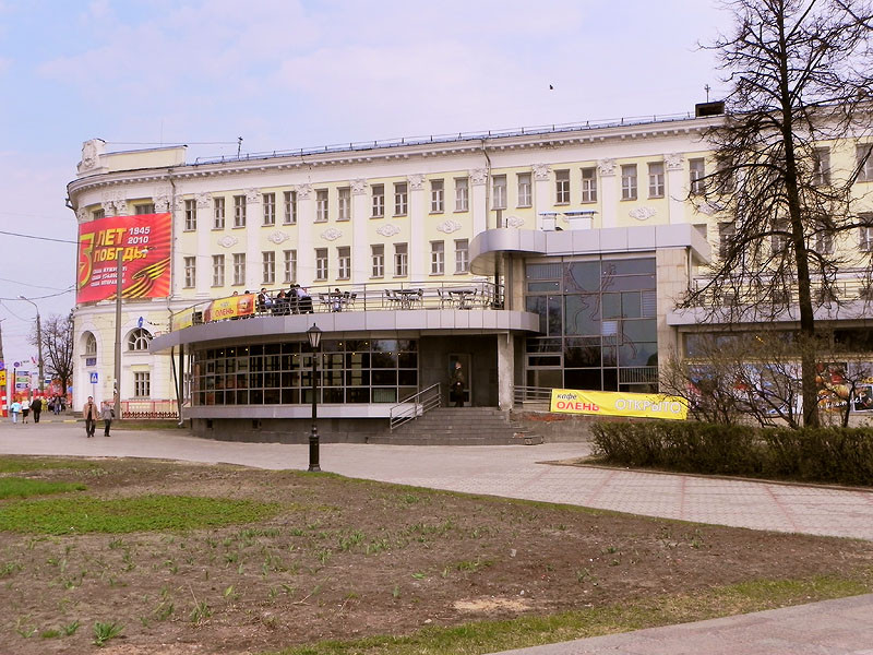 2. В кои-веки заработала бандура в сквере у памятника Минину. Кафе с вековым названием "Олень" приторговывает фаст-фудом. Какой-то манагер внутри обстоятельно рассказывает меню всем пришедшим. Просторно, площадка на крыше есть, но внутри пока как-то скудненько, да и здание уже потрепалось за то время, что стояло без дела.
