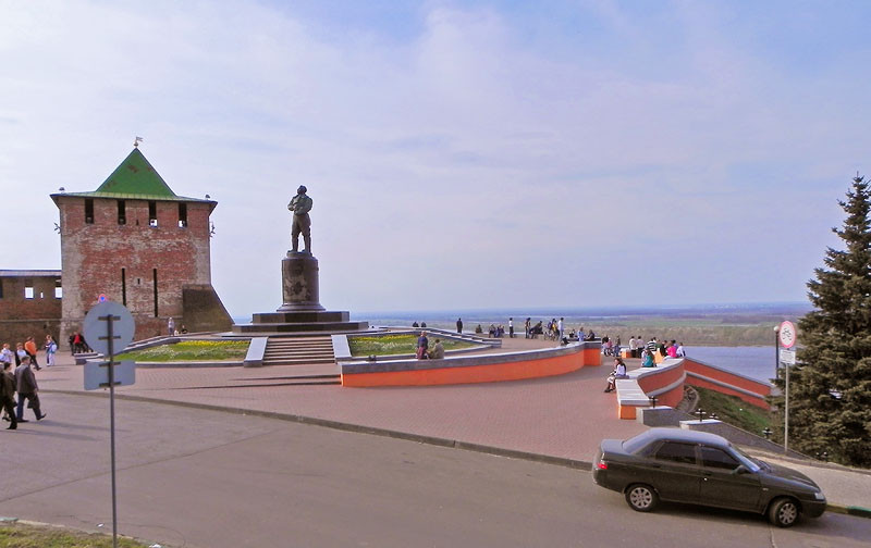 В кои-веки заработала бандура в сквере у памятника Минину. Кафе с вековым названием "Олень" приторговывает фаст-фудом