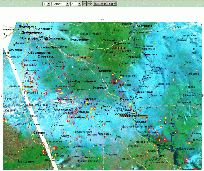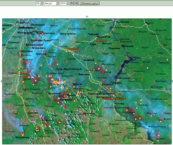 Всюду только и слышно про "огонь успешно сдерживаем", "круглосуточно караулим границу", "гасим встречным палом" и т.д. - почему на картах все иначе??? А у Моршанска что встречный пал неудачно провели??? А Сосновка? Кулебаки?