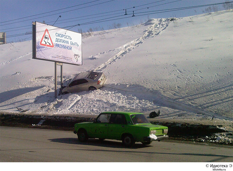 Вот именно соскользнул и уже скорее всего за чертой города, в черте там отбойники конкретные слоят
