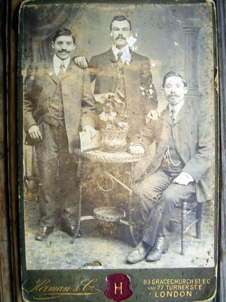 В центре прадед.Рядом его родные братья.Несмотря на то,что снизу написано Лондон,я думаю снято в НН.Наверное,это картонка,на которую наклеен снимок,аглицкая.