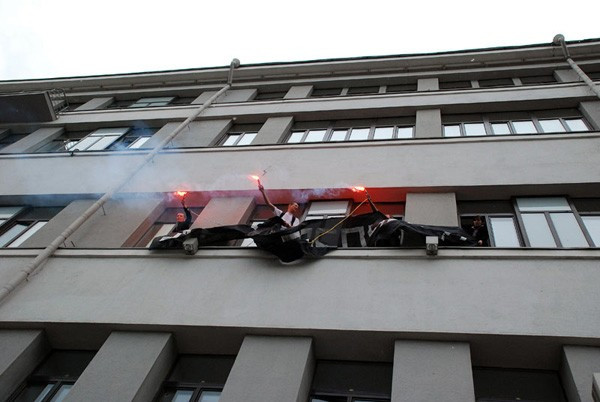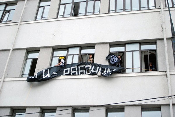Напомним, 9 июня, в районе 11.20 утра 12 нацболов вошла в здание компании «Российские железные дороги» (Новая Басманная ул., 2). Нацболы заблокировали дверь в кабинете президента компании Владимира Якунина на третьем этаже здания, а также двери в двух соседних кабинетах, вывесили из окон здания растяжку с лозунгом: «Деньги – рабочим!» и раскидали листовки с требованием повысить рабочим зарплату и безопасность пассажирских перевозок, а также прекратить дискриминацию за принадлежность к профсоюзу РПЛБЖ. Нацболы сумели вручить листовку со своими требованиями лично президенту «Российских железных дорог» Владимиру Якунину.