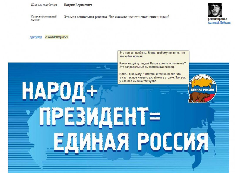 А это там Лебедев отвечал? Сам великий и ужасный Артемий Лебедев написал: