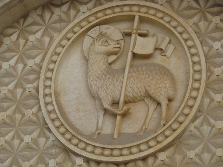 Барельеф на лютеранском храме в Старом городе. Необычным показался: Агнец несет крест с флагом.