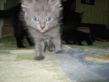 Котята воспитанные, красивушные, приучены к туалету, кушают все подряд. В наличии 3 черных, один голубенький и один черно-белый. Один мальчик, остальные – девки.