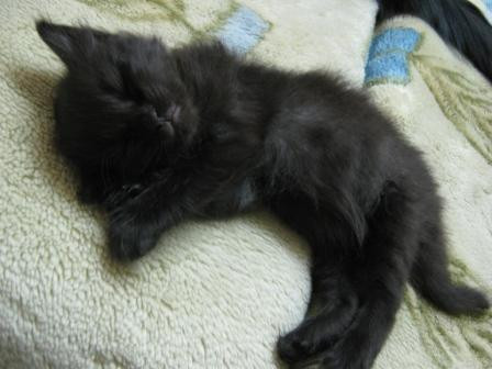 Черный мальчик. Будет большим (уже сейчас огромные лапы). Очень игривый и сильный.