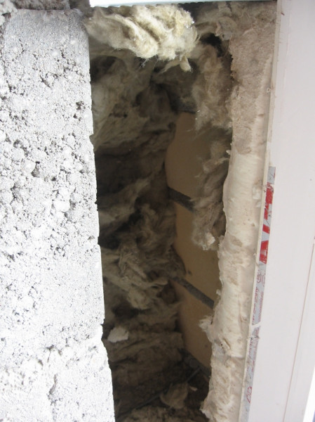 у нас было прикольней, откосы из гипсухи внутри пустота еще дальше утеплитель, из него сифонило как с улицы