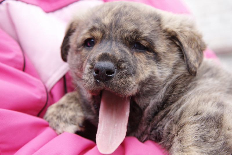 Сынуля- просто комок очарования! Лохматый и очень крупный для своих околомесяца, толстый бутуз с широченной мордасей.