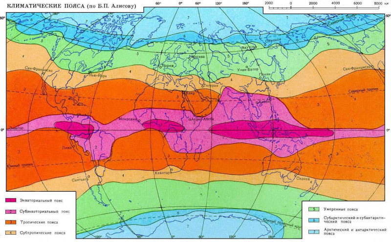Если вы посмотрите на климатическую карту, то заметите, что климатические пояса, границы климатических поясов, в Северной Америке "сдвинуты" южнее относительно европейских.