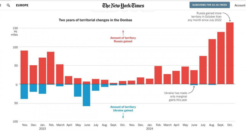 Весной армия России брала по 100 кв км в месяц.