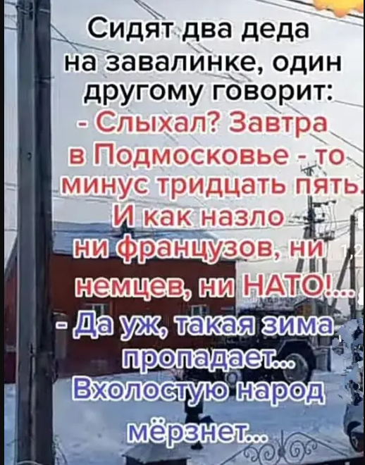 Чисто по-человечески жалко, что не замёрзли. Было бы клёво, если в Западной Европе подержалось бы -35 пару недель. Я бы поугорал над видосами с разрушением коммуникаций, голодными бунтами и умирающими пенсионерами.