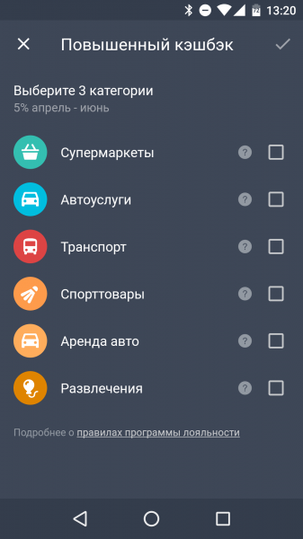 где-то кэшбэк на всё одинаковый, где-то можно выбирать повышенный на определенные категории покупок.