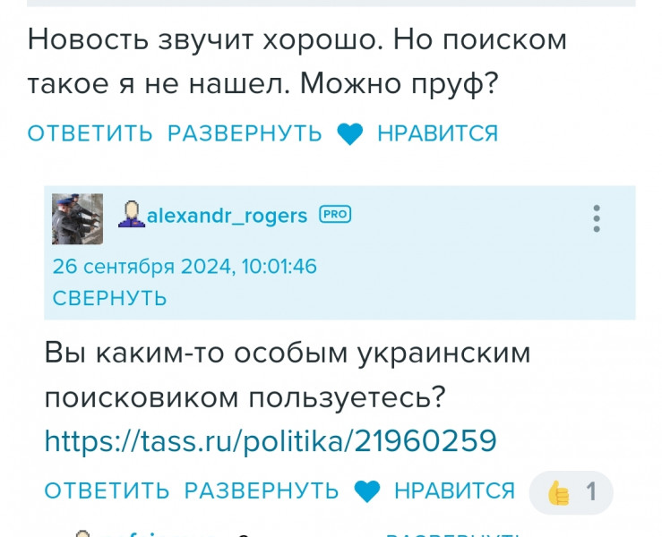 Роджеру указали на то, что ссылка не та и скорее всего новость ТАСС удалил когда разобрался что это фейк.
