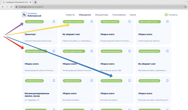 <<Чудные дела творятся. Только мэр Нижнего Новгорода Юрий Шалабаев решил добавить городскому управлению диджитола, как подчинённые спешат наполнить его панаму. Мэр анонсировал единую платформу для обращений горожан <<Лобачевский>>. Кстати, без слов <<тестовый период>> и даже особо отметил, что платформа пашет уже месяц - там 2 тысячи обращений. Мы надели маску сварщика и решили посмотреть на эту вспышку. В шапке сайта висит счетчик про поданные 2877 и исполненные 1639 обращений. Где посмотреть саксес-стори - непонятно. Пярщикам мэрии очевидно тоже наплевать, видят ли горожане, что Шалабаев работает. В доступе на полдень этого дня всего 29 обращений. Из них 23 - про плохую уборку снега и наледи, и 17 - из Московского района. Самое старое обращение - от 25 февраля. Это настоящее кулстори: жительница Советского района пожаловалась на нечищенный тротуар по улице Ванеева, и 19 марта ей пришел мегаоперативный ответ от Советской администрации: подрядчик наказан снижением оплаты. Обращение же при этом получило статус <<Итоговый отчет. Проблема не решена>>. Судя по ответам на <<Лобачевском>> вообще проходит чемпионат по футболу. Жительнице улицы Куйбышева, у которой не чистят снег вокруг дома, чиновники рекомендовали обратиться в АТИ, а обращение повисло в <<отложенных>>. Нижегородка, чье местоположение определилось в Московском районе, написала про завалы снега в Нижегородском и через неделю получила ценный совет идти по адресу. Спасибо, что не в администрацию Санкт-Петербурга, потому что к обращению волшебным образом пристёгнута карта Питера. И, наконец, особенности нижегородского педального диджитола: от поступления обращения до <<взято в работу>> иногда проходит 5-7 дней. С районными администрациями всё давно понятно. Но теперь у нас появилась мечта. Весь коллектив нашего канала надеется найти пристанище в нижегородском департаменте цифровой трансформации, как Марат Фатхуллин. Это работа мечты.>>